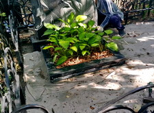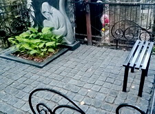 На представленных ниже фотографиях состояние места захоронения на момент прихода клиента. Брусчатка положена, форма цветника и вид оградки изменены. Работа над этим объектом – яркий пример того, как сильно может повлиять на внешний вид участка лишь одно наземное покрытие.